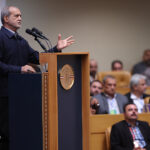 پزشکیان در آغاز سخنرانی خود با درود به روح امام خمینی (ره) و یاد شهیدان انقلاب گفت: